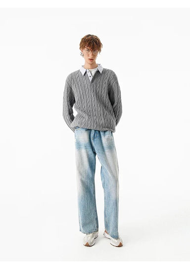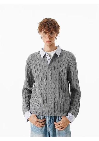 Save $-106.62 $106.62 | / Men’s Vintage Cable Knit Layered Sweater – Retro Street Faux Two-Piece Pullover S0043