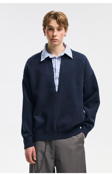 Save $-102.27 $102.27 | / Vintage Layered Knit Sweater – Retro Patchwork Two-in-One Pullover for Men S0027