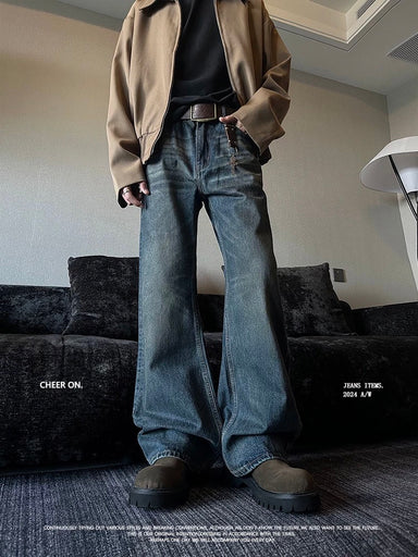 Save $-97.96 $97.96 | / Vintage Curved-Cut Wide-Leg Jeans for Men | American Retro Casual Denim PantsB0101