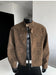 Chaqueta vintage de piel sintética con efecto tie-dye para hombre, cuello alto, estilo urbano, T0078