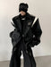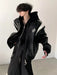 [AUTUMNWIND] BLACK COTTON THICKENED LEATHER JACKET T0121