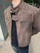 [DAZHONGMA] DYED CROPPED FAUX LEATHER JACKET T0183