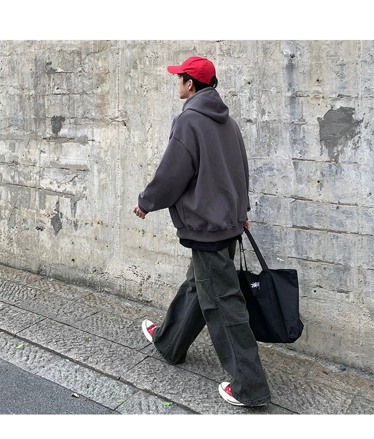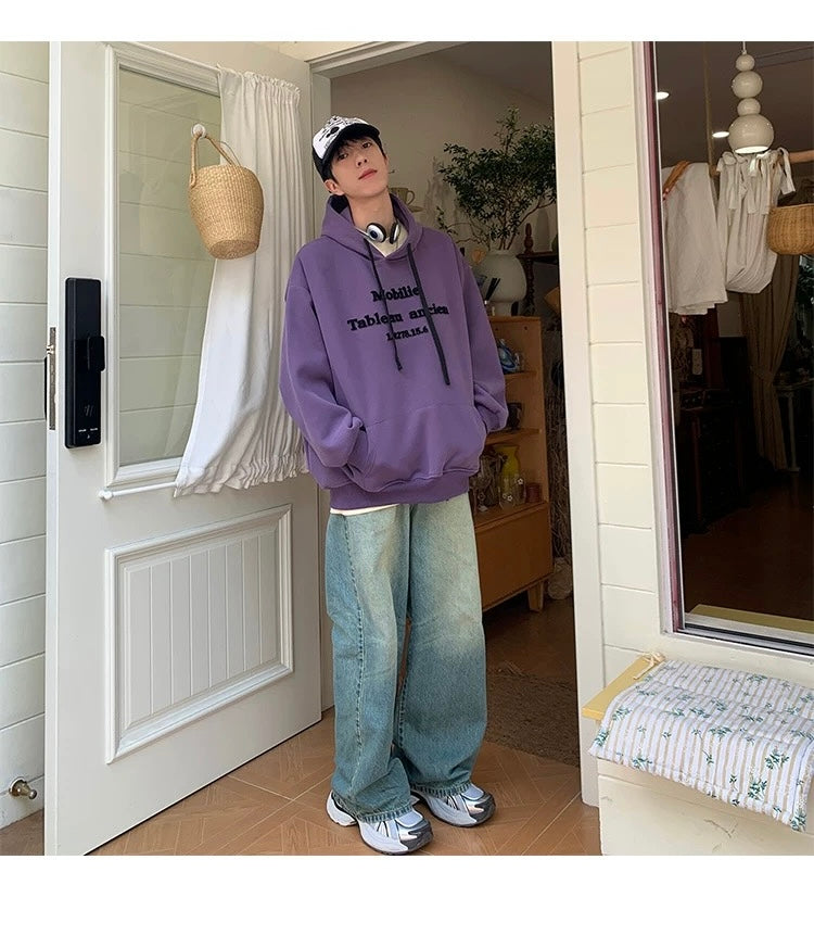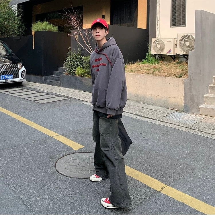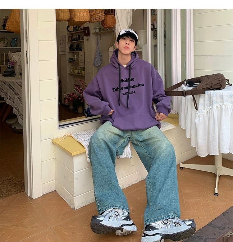 Men’s Vintage Brushed Embroidery Hoodie – Retro American Streetwear Pullover T0202